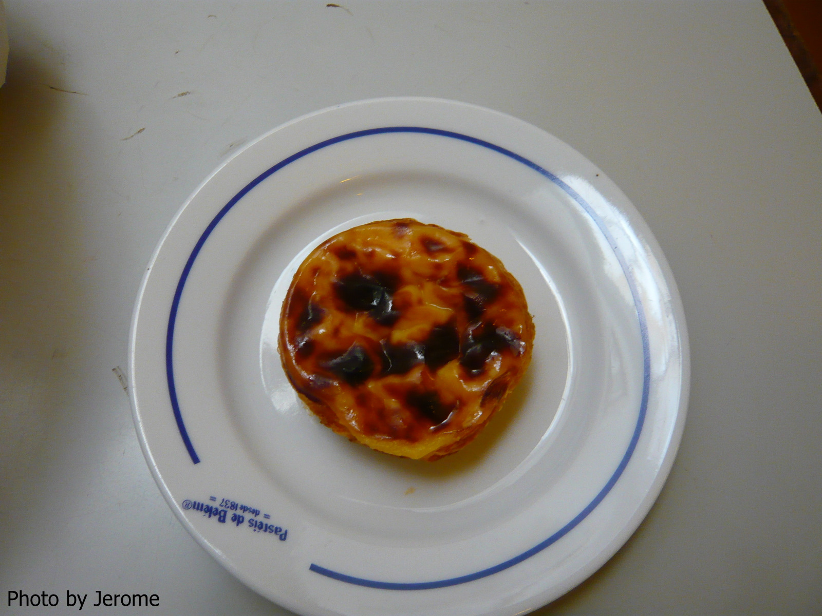 This is "pastel de Belém", a hundred years history shop made this, a bit more sweet, 90cent per each, you can served with coffee.