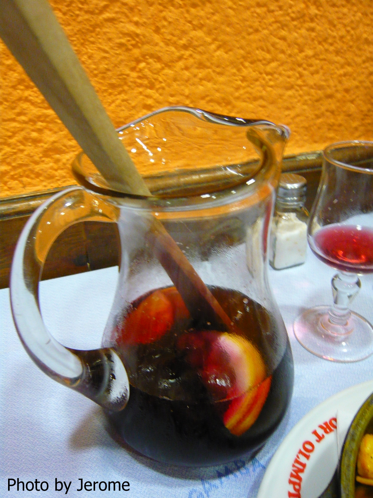 Sangría. Some one told me how to make this, the good sangria is made by many kinds of different wines, and add some sugar, fruits in it. So, that's why you can easily get drunk.